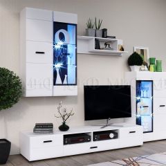Изысканная, белоснежная с приятным блеском гостиная, несомненно украсит собой любую квартиру или дом. В гостиной есть все необходимые элементы для красивого оформления комнаты. Фасады с фрезеровкой и стеклянные витрины современный и стильный образ вашему дому.