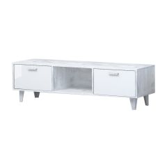 Тумба ТВ, Эго Т-3, ( на ножках) Бетон светлый/Белый глянец