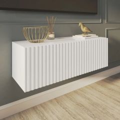 Благодаря своей компактности тумба под ТВ подвесная поможет сэкономить пространство, избежать ощущения загромождённости гостиной, спальни или детской комнаты, а рифлёный фасад будет акцентировать