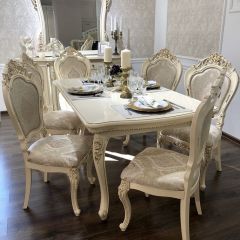 Если вы хотите создать в своем доме неповторимую обстановку тепла и уюта, столовая «Джоконда» обладает всеми необходимыми качествами для этого. Являясь ярким представителем нетленной классики, она насыщена цветом и золочением декоров. Неповторимую вальяжность данной коллекции придают массивные объемные декоры, которые, в сочетании с резными элементами балясин, выглядят достаточно эффектно.