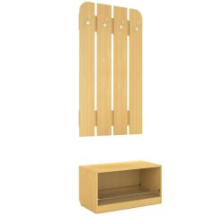Вешалка навесная Гм.ПР-4 серии Проспект выполенена из ЛДСП толщиной 16 мм, комплектуется крючками для одежды и открытой приставной тумбой для обуви и личных вещей.