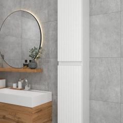Белый шкаф пенал с рифлёным фасадом будет отлично и стильно смотреться как в ванной, так и в туалете. Шкаф пенал с полками можно повесить в прихожей, в коридоре и использовать для хранения небольших вещей и мелочей. Такой белый навесной шкаф можно использовать как шкаф навесной в гостиной или как шкаф для детской.